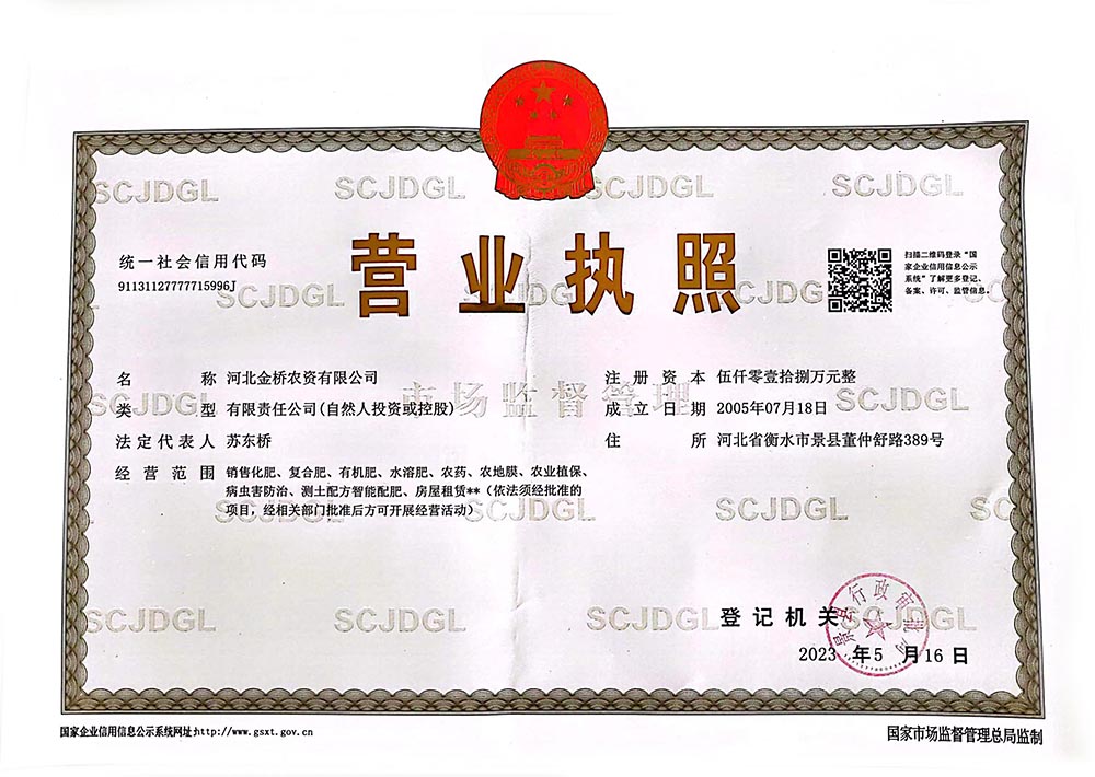 河北金橋農(nóng)資有限公司是景縣供銷社下屬的股份制企業(yè),公司注冊資金5018萬元,倉儲面積15萬平方米。經(jīng)營范圍:化肥、農(nóng)藥、農(nóng)地膜、無人機銷售、維修、無人機飛手培訓(xùn)及飛防作業(yè),測土配方智能配肥等業(yè)務(wù)。公司下設(shè)景州、吳橋、王瞳、龍華、滄州、衡水、河間等九個農(nóng)資配送中心,二個化肥經(jīng)營部......